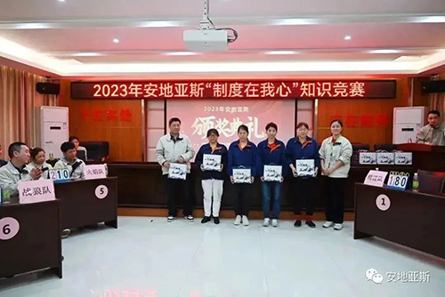 陽春三月、風和日麗。為推動公司制度建設(shè)的整體規(guī)劃、鞏固、提升全體員工的綜合素質(zhì),以賽促學(xué)、以學(xué)促干,形成公司自主學(xué)習(xí)的良好氛圍。經(jīng)公司行政人事中心精心策劃,2023年3月10日下午2點,在經(jīng)開區(qū)黨群活動中心隆重舉行了2023年安地亞斯第一屆“制度在我心”知識競賽。此次競賽內(nèi)容涵蓋企業(yè)文化、行政制度、產(chǎn)品知識、安全知識、品質(zhì)知識、操作過程等全方面內(nèi)容。經(jīng)過各部門嚴格選拔,共有9支隊伍45人參賽。